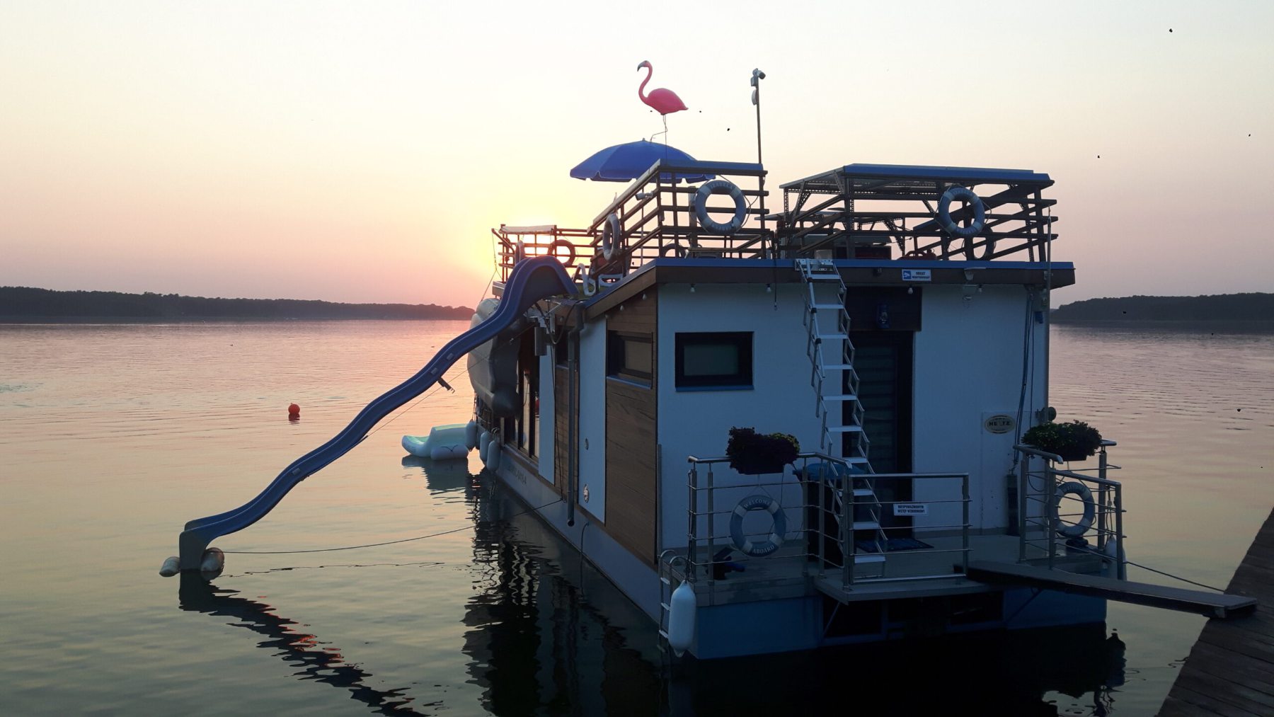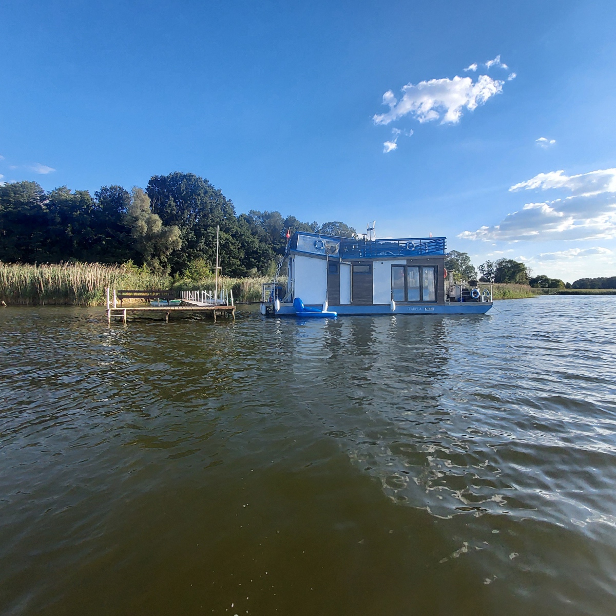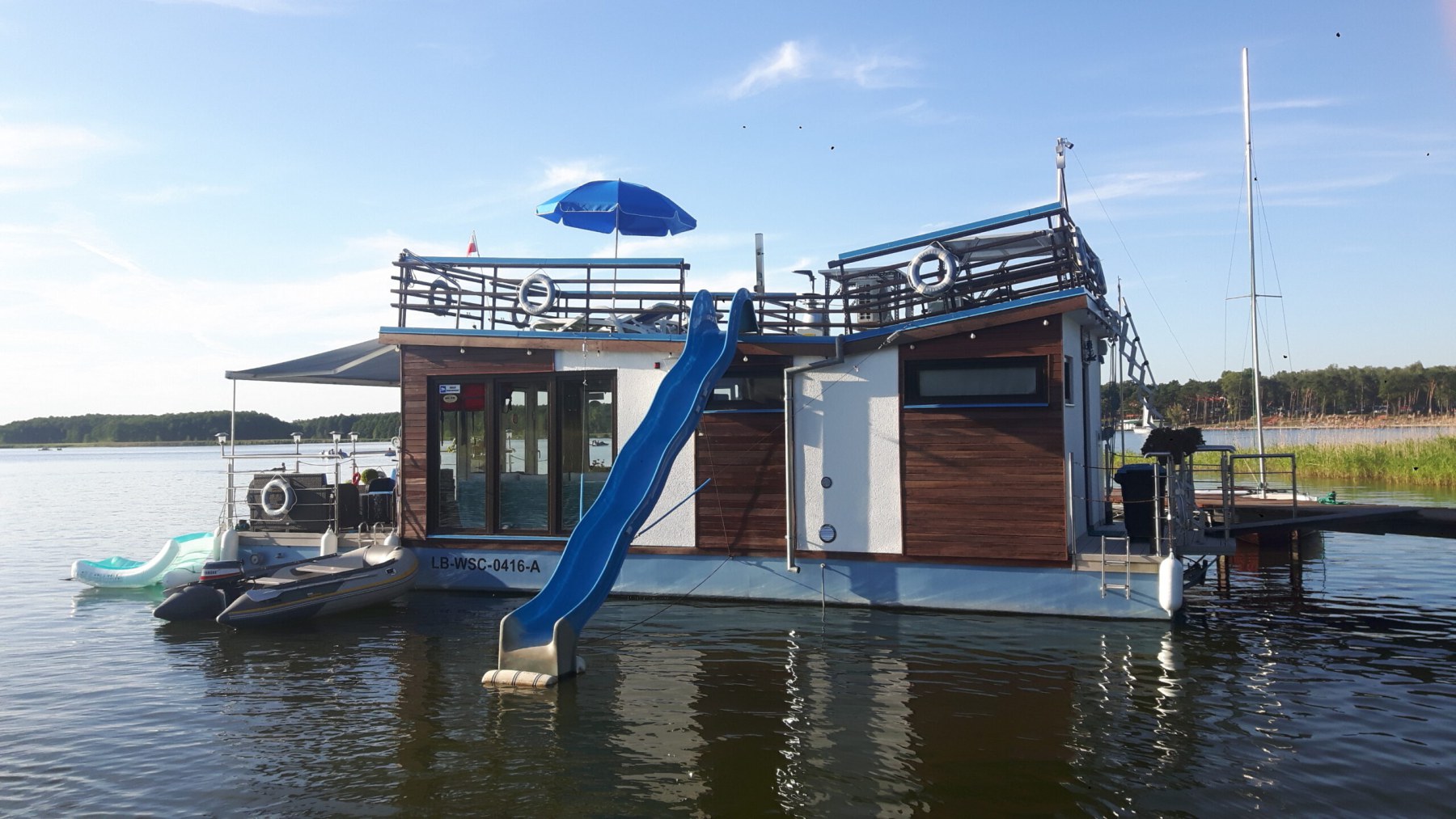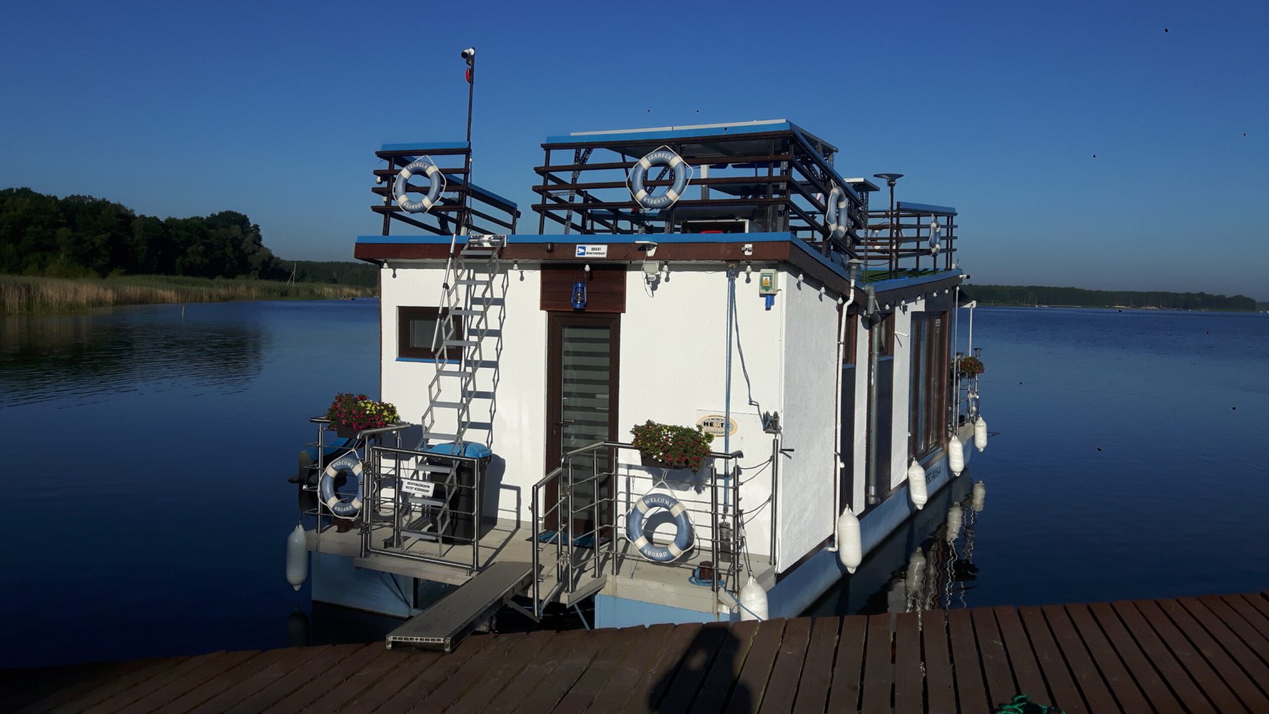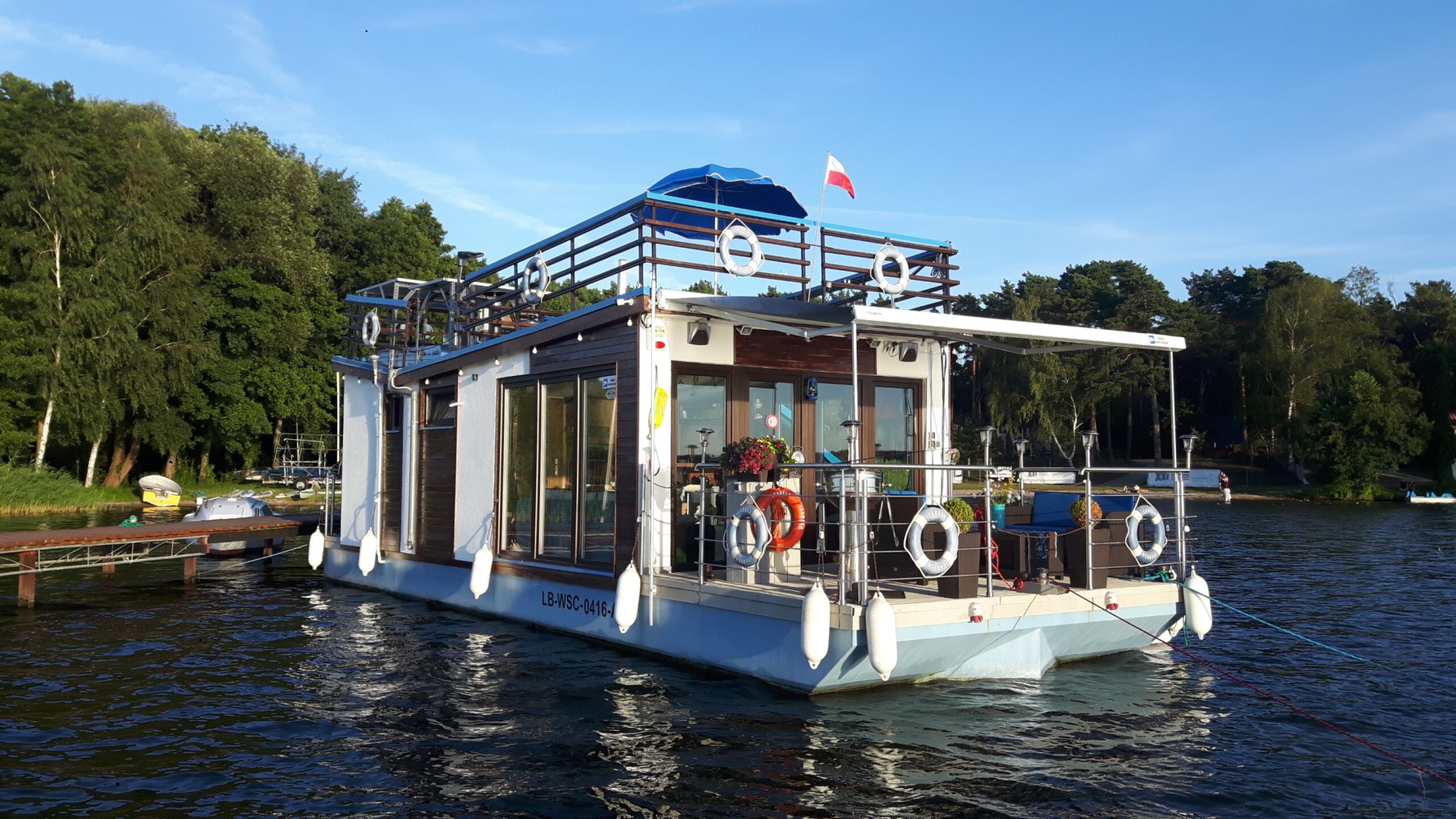 Nasz HouseBoat to łódź mieszkalna dla max. 6 osób, która jest całkowicie samowystarczalna i nie musi być podłączona do żadnych instalacji zewnętrznych, dzięki czemu można zacumować ją i zaszyć się w dowolnym dzikim zakątku jeziora. Dom jest całoroczny – ocieplany, ogrzewany i klimatyzowany oraz ozonowany.