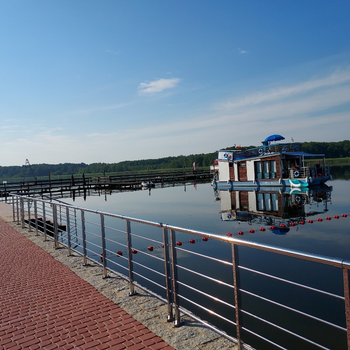 Nasz łódź zacumowana jest na jeziorze Sławskim, w bardzo malowniczej okolicy, która zachęca do aktywnego wypoczynku. Wokół jeziora znajdują się ścieżki rowerowe i piesze z ciekawymi informacjami związanymi z okoliczną przyrodą. Wśród nich znajduje się ścieżka edukacyjna “Lekcja Biologii Inaczej” oraz ścieżka rowerowa “Nad Sławskim Jeziorem”. Jest to spokojna okolica, która zachęca do relaksu i wypoczynku.